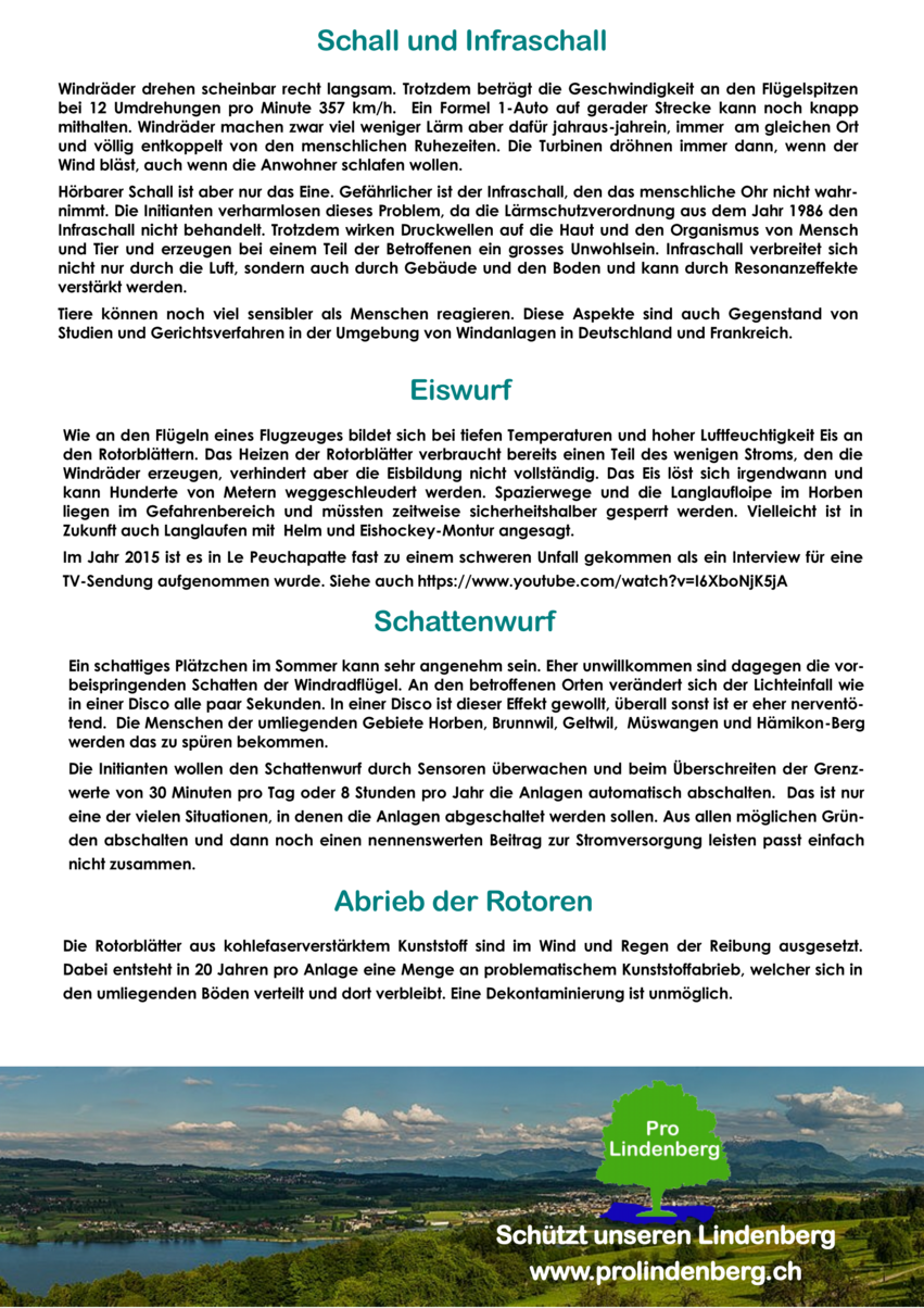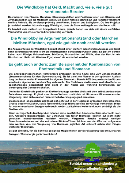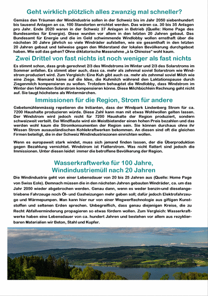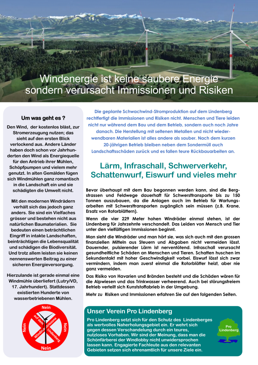 Die Schweiz ist kein Windland (Flyer Pro Lindenberg)